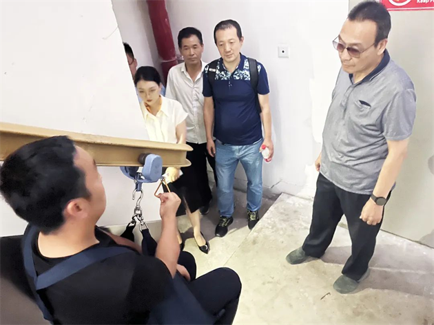 專家組重點(diǎn)詢問查驗(yàn)了加工工藝、材料承重、樓梯道間距、軌道結(jié)構(gòu),并親身體驗(yàn)了逃生效果。