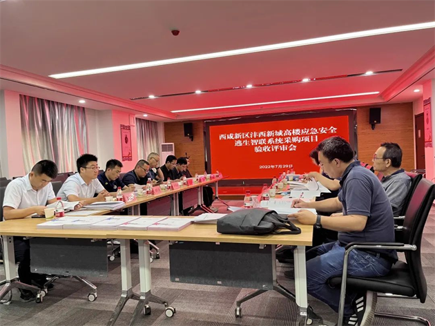 在勘驗(yàn)、觀摩、體驗(yàn)了“高樓應(yīng)急安全逃生智聯(lián)系統(tǒng)”后,驗(yàn)收評(píng)審組對(duì)該項(xiàng)目的安全性、穩(wěn)定性、實(shí)操性等給予了肯定。并建議西咸新區(qū)灃西新城高樓應(yīng)急安全逃生智聯(lián)系統(tǒng)項(xiàng)目是新型產(chǎn)業(yè),關(guān)鍵在于盡早制定地方標(biāo)準(zhǔn),利于項(xiàng)目進(jìn)一步的推廣。最終,經(jīng)討論形成了評(píng)審意見并通過項(xiàng)目驗(yàn)收。