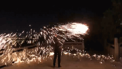 可以看到隨著不斷揮動迸發出的火星